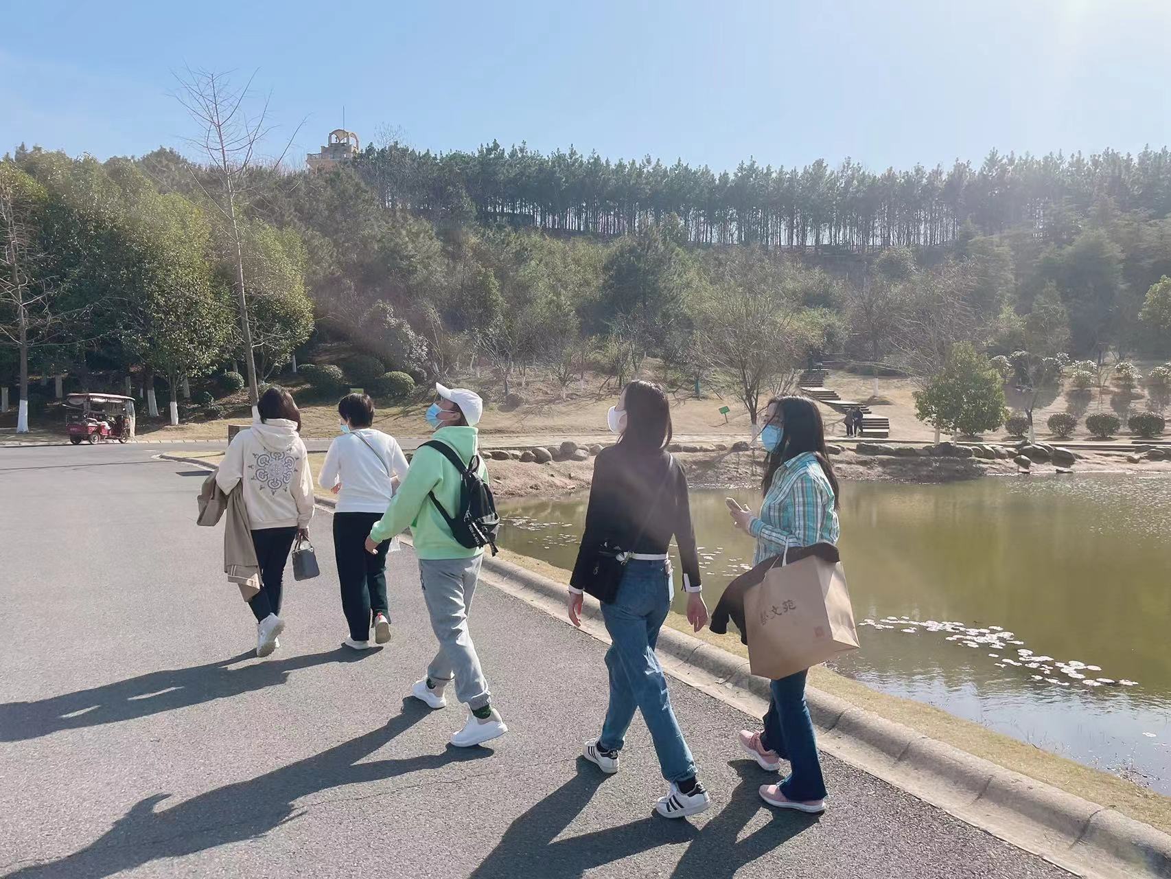 此次出行大家都兴致勃勃,阳光明媚、春风如沐,走在园区,到处是绿意盎然、清新可人的景色。看着如丛林一般的水杉,整齐排列的银杏,枝繁叶茂的枫树,让人心情舒畅,这是一方不可多得的洗肺之地。现在虽然不是*佳观叶季节,但是到了秋天,它们一定会熠熠生辉,浪漫而热烈,如同油画一般美丽。