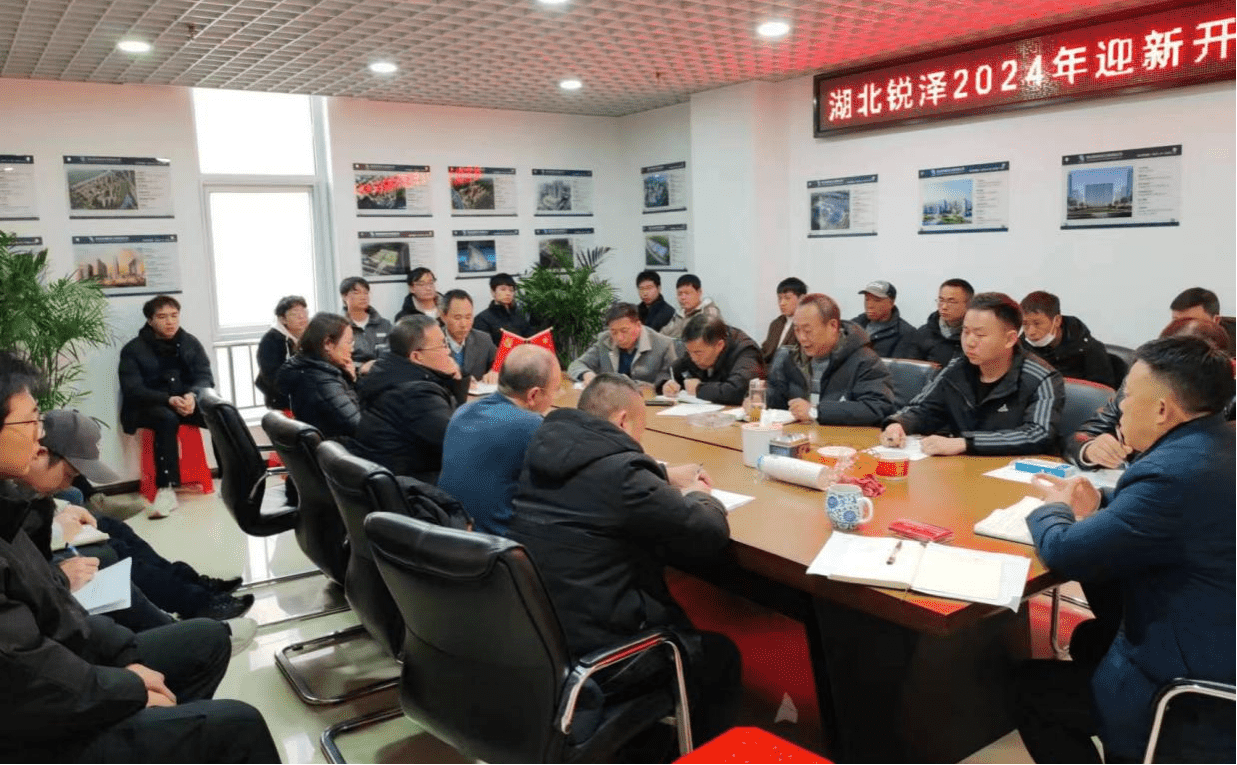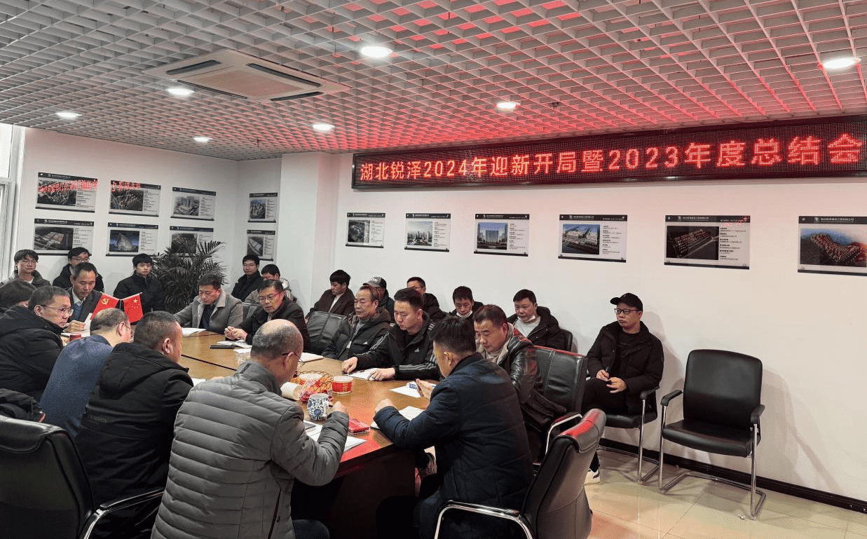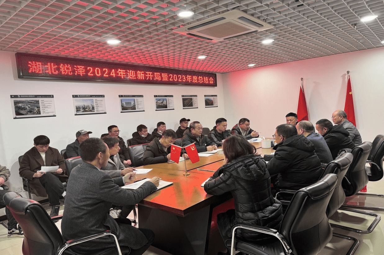 2024年2月21日,湖北锐泽建设工程有限公司在武汉胜利召开2024年迎新开局暨2023年总结会。出席会议领导有总经理夏全刚,副总经理、党支部书记邓馗鑫及公司管理层,公司本部人员及各项目部管理人员参加会议。列席会议的还有公司材料供应商、劳务班组长。
